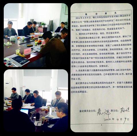 2016年4月9日,鎮(zhèn)江市科技局組織專家對我公司完成的“智慧云政務(wù)系統(tǒng)應(yīng)用平臺”項(xiàng)目進(jìn)行科技成果鑒定。鑒定委員會在審閱了相關(guān)文件資料,觀看了系統(tǒng)演示,經(jīng)質(zhì)疑討論后,對公司的項(xiàng)目成果給予高度肯定。